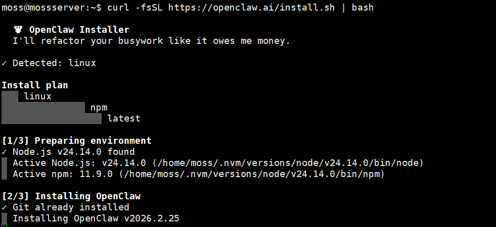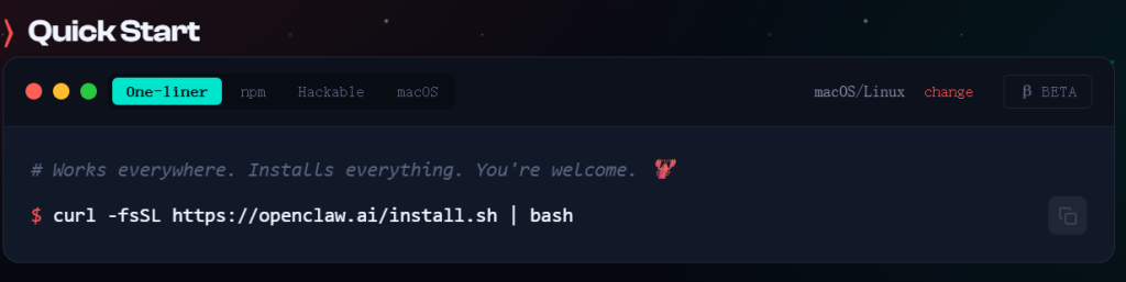 curl -fsSL https://openclaw.ai/install.sh | bash