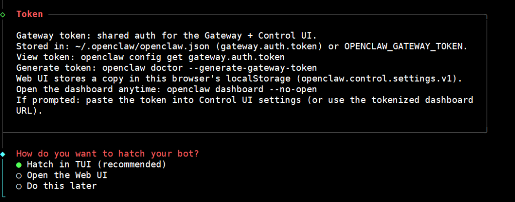 8、启动方式选择:选择“TUI”(终端聊天界面),出现聊天界面后输入“Hello”测试,确认安装成功;