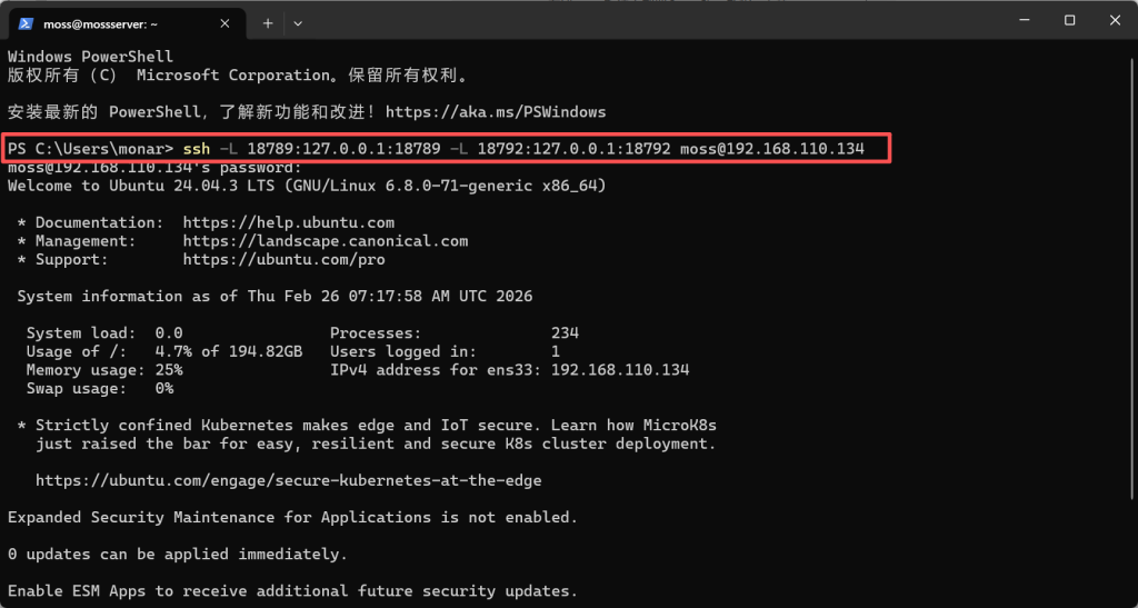 第五步,本地电脑建立SSH通道