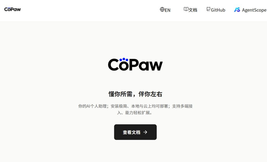 官方地址:https://copaw.agentscope.io/
