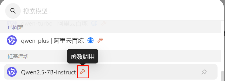 需要使用支持函数调用(在模型名字后会出现扳手符号)的模型