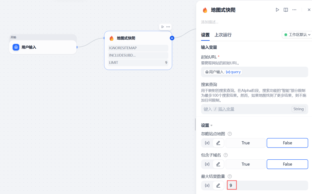 选取 工具-firecrawl,选择“地图式快爬”(获取网站上所有的网址)。