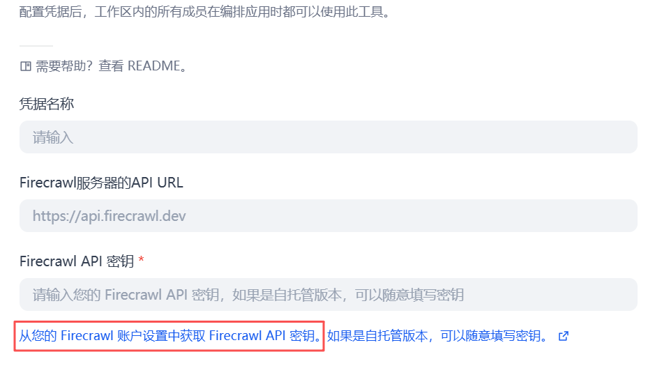 第二步:点击 firecrawl,去授权,注册后获取并填入密钥。